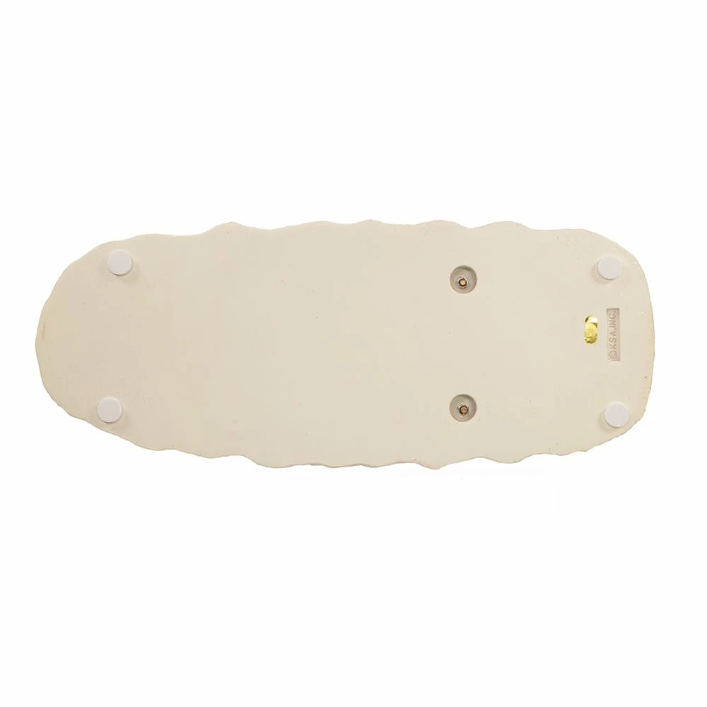 The 10-Inch Fabriche Flamingos Pulling Santa Sleigh is a whimsical and fun table piece. Two flamingoes in Santa hats are leading Santa in his classic outfit in his sleigh. The sleigh is decorated with garland and “Merry Christmas” written on the side. This is a lovely piece that combines nautical life with Christmas.