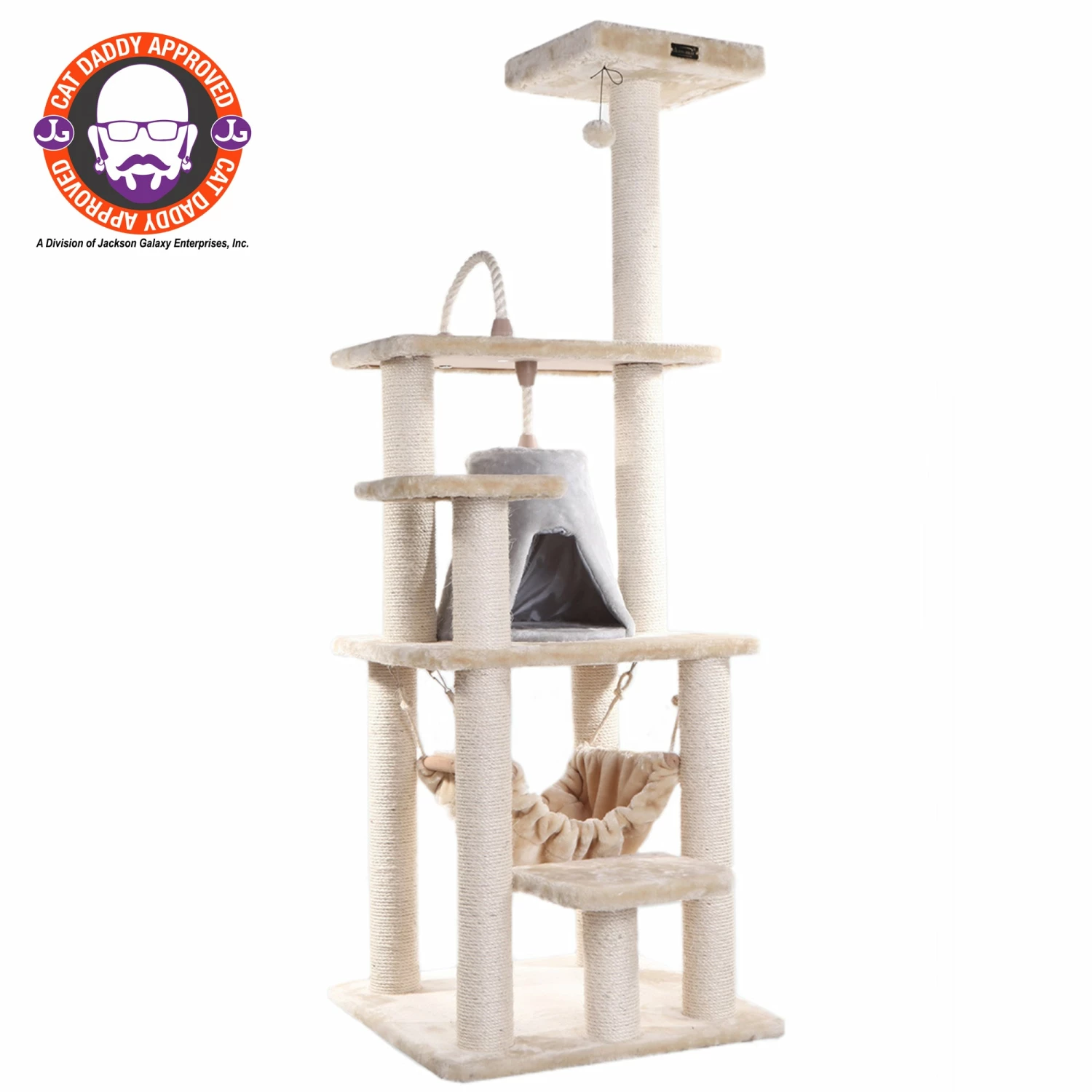 Armarkat model No. A6501 is Cat Daddy approved by noted cat behaviorist Jackson Galaxy and features a swinging hammock and condo.It Comes with 2 perch, 1 tent house, 1 swinging hammock, 1 sisal toy, 9 posts of natural sisal rope.