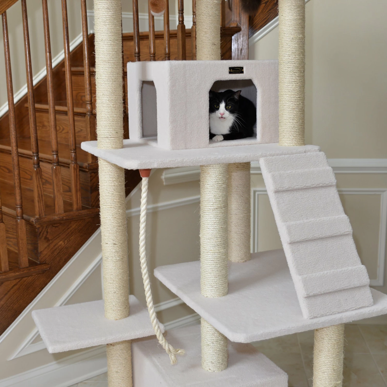 Armarkat B8201 Classic Cat Tree In Ivory, Jackson Galaxy Approved, Multi Levels With Ramp, Three Perches, Rope Swing, Two Condos