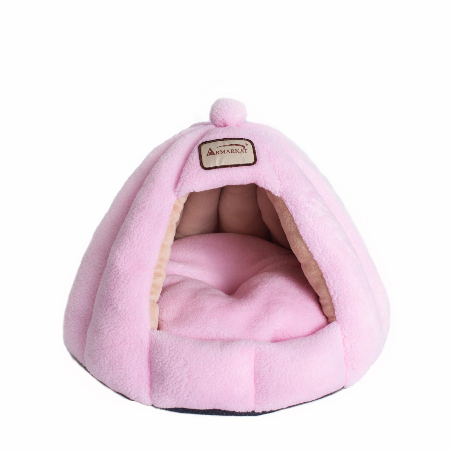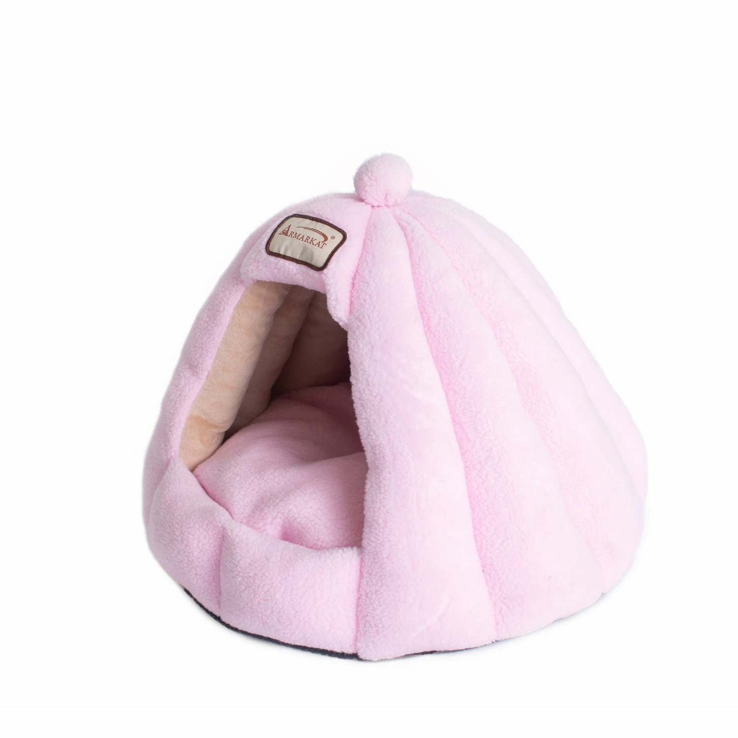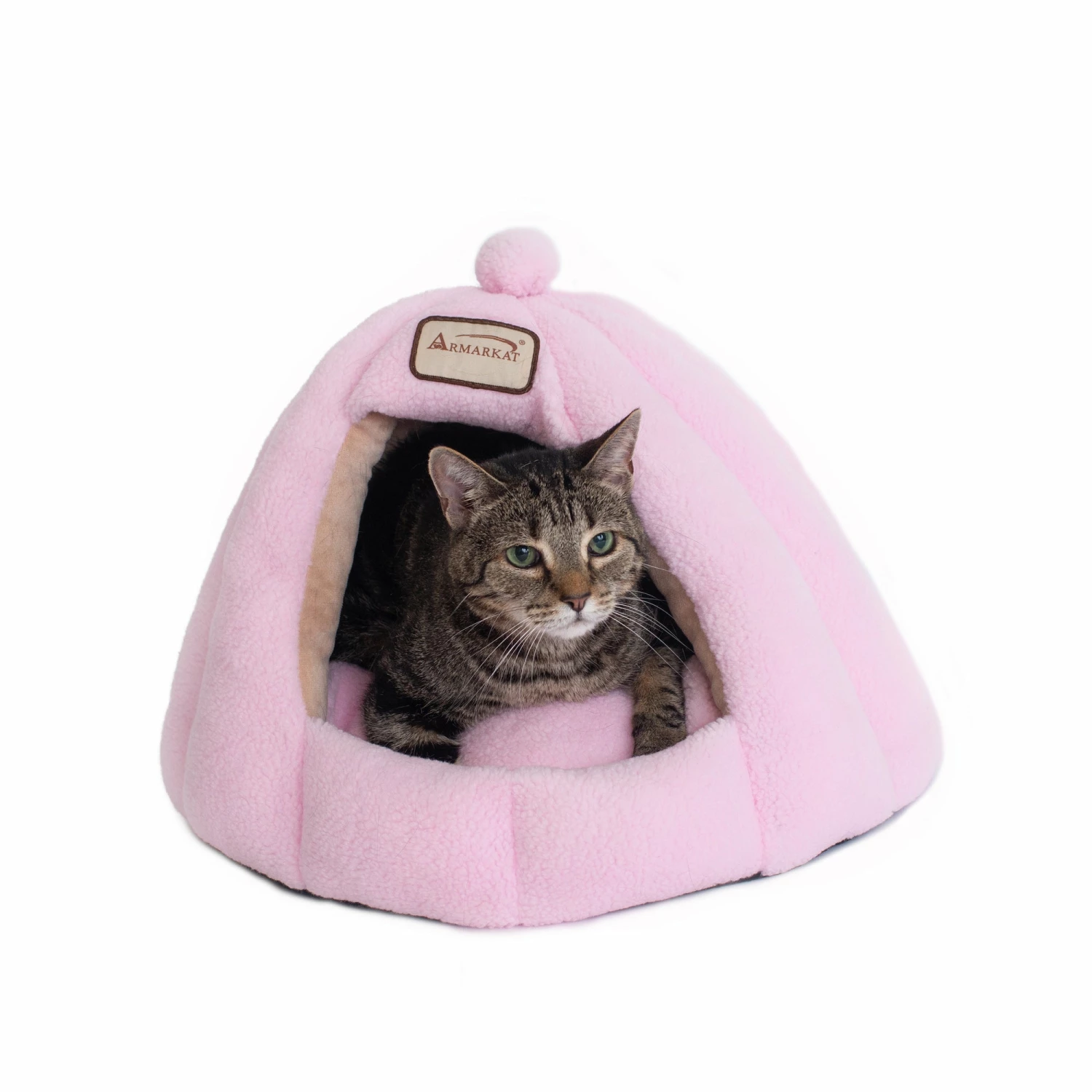 Armarkat?s Model C95GFS cat bed is as cute as a gumdrop for your kitty or tiny dog. Made with faux fleece and 100% polyfill for maximum comfort. The bed has a cave shape. Offered in a soft pink color, this bed is perfect for quiet afternoon naps. The interior mat is safe to machine wash and dry.