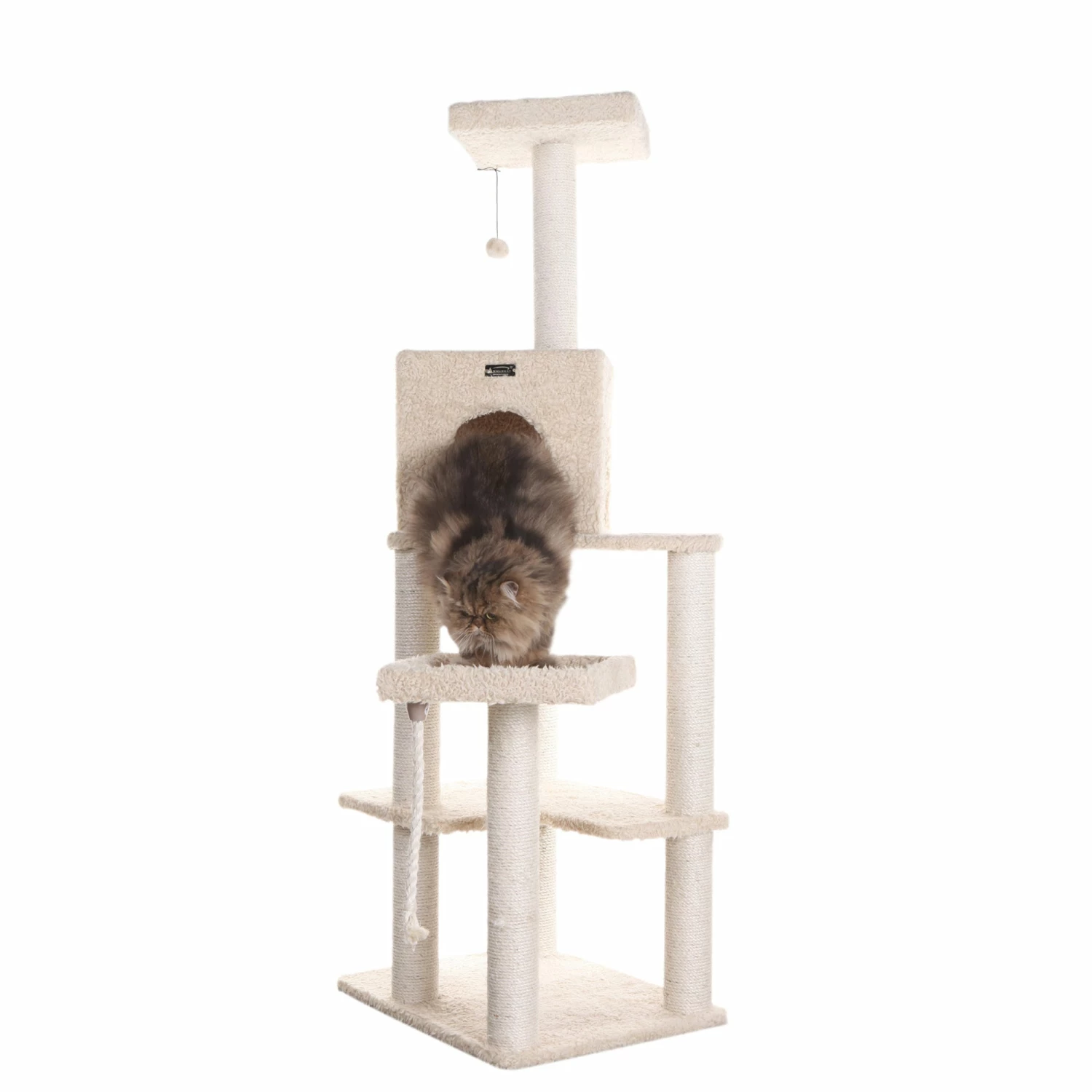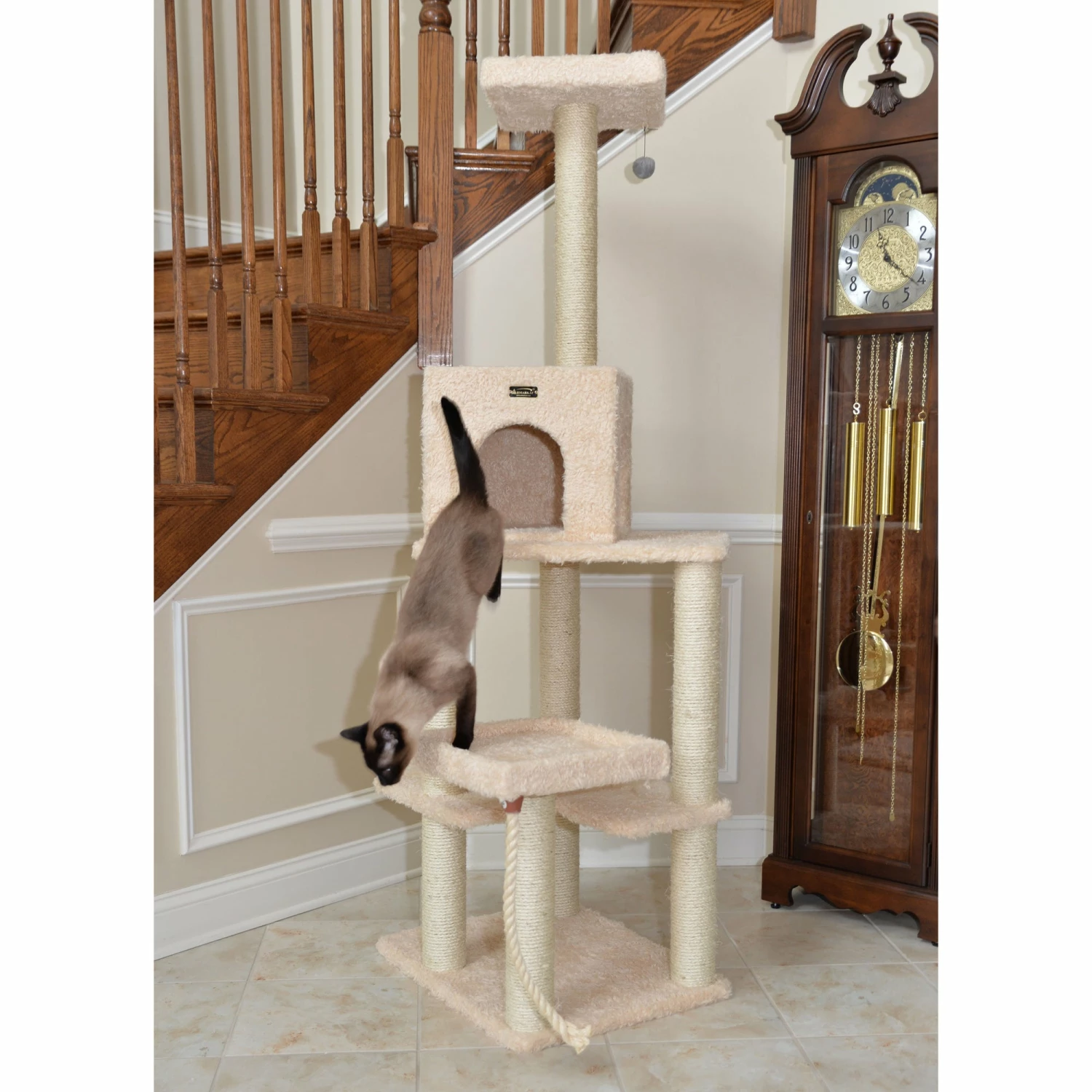 69″ height, Beige with high density and Ultra-Thick faux fur covering for felines comfort and soft, coverings are permanently adhered to wood structures.
