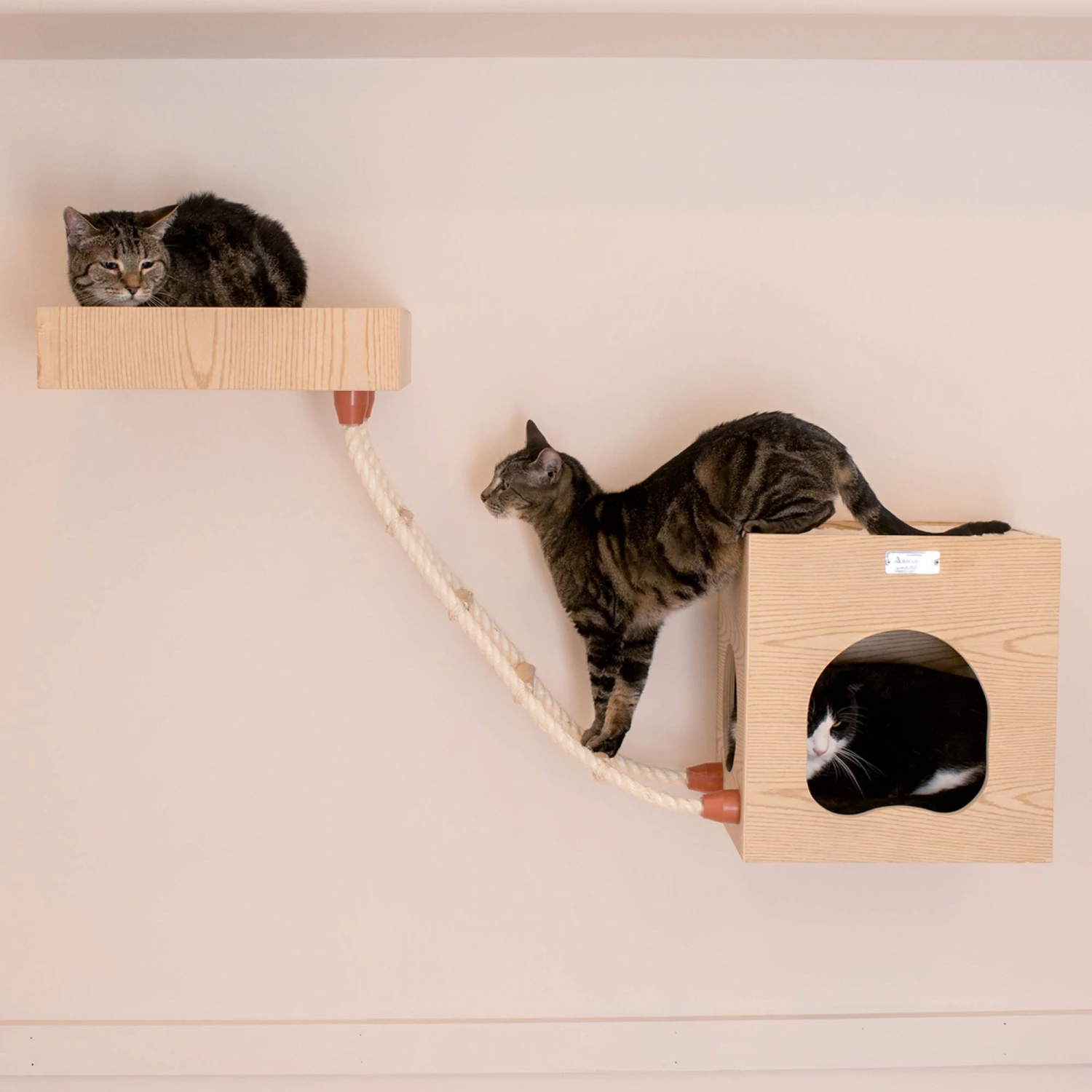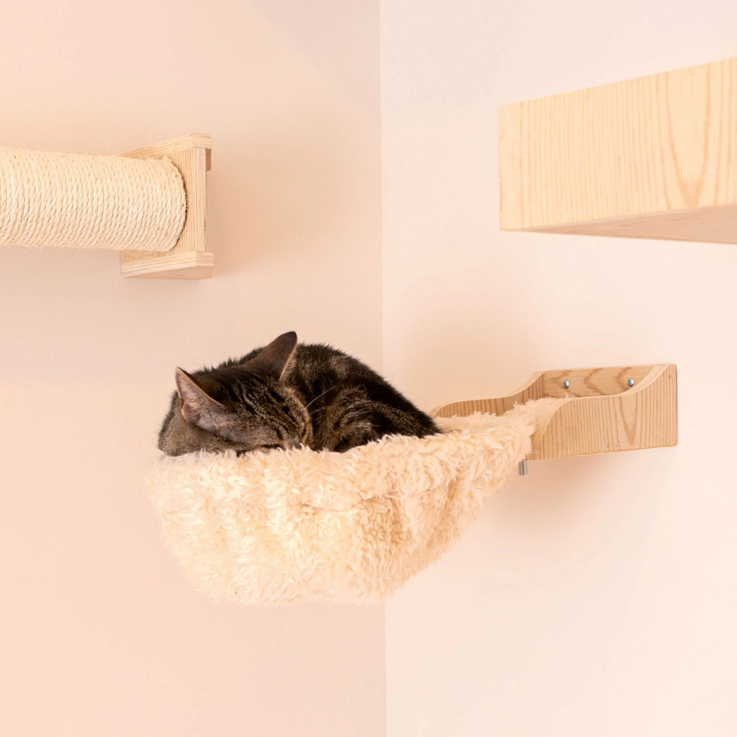 Give your kitty the perfect gift with Armarkat W1907B natural beige meandering wall tree. This feline wall furniture includes a mini cat condo, soft perch, and a boxed condo. Pet owners can easily install the tree with tools and step-by-step instructions. The tree is constructed of solid Poplar layered and naturally variegated wood.