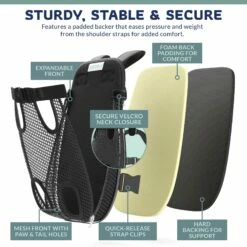 The top has a net and the front flap can be kept open thanks to a snap button. Your dog will be extremely comfortable and protected while looking outside in complete safety during your walks.