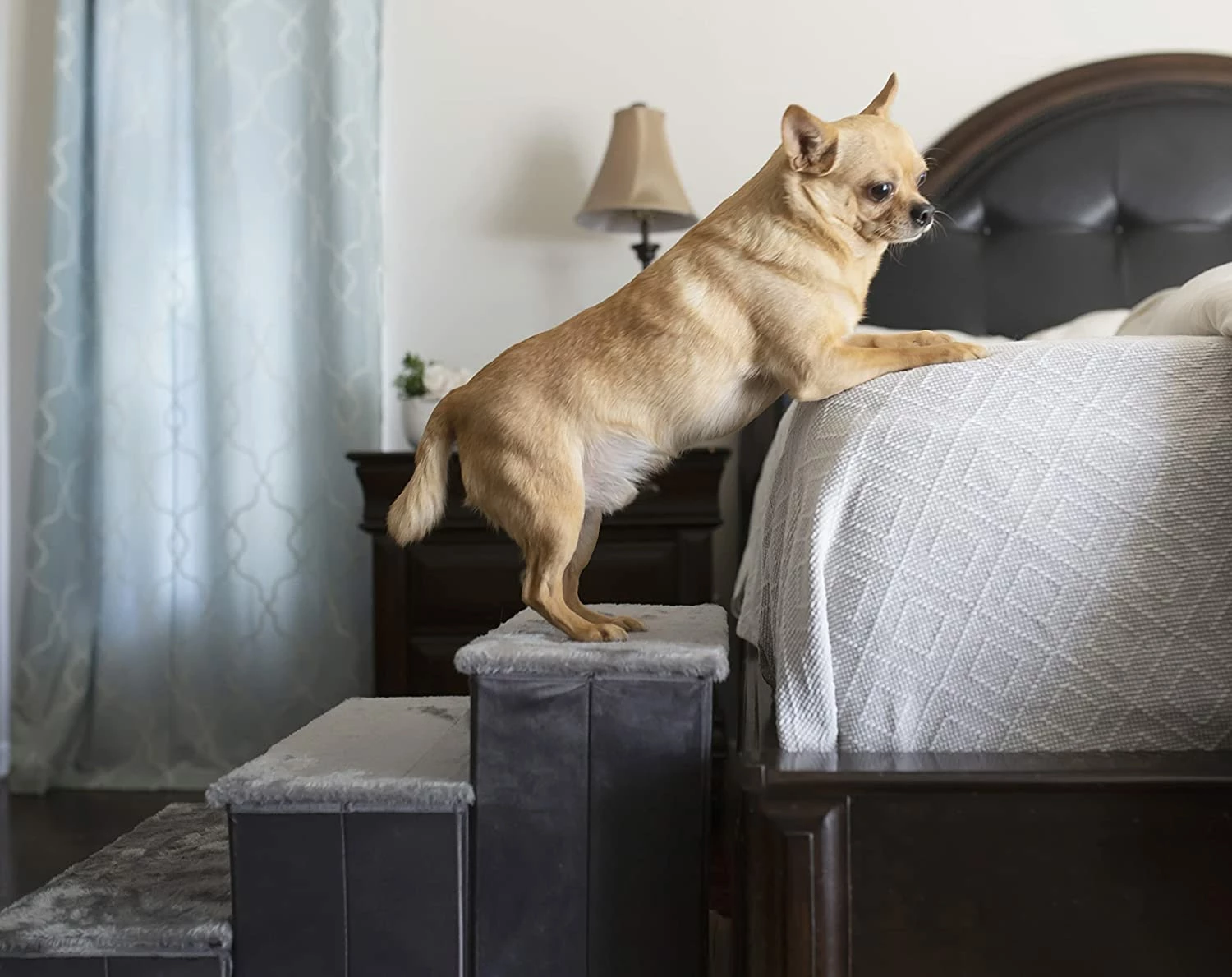 - Charcoal stepping ladder is ideal for pets who need an extra boost to reach new heights