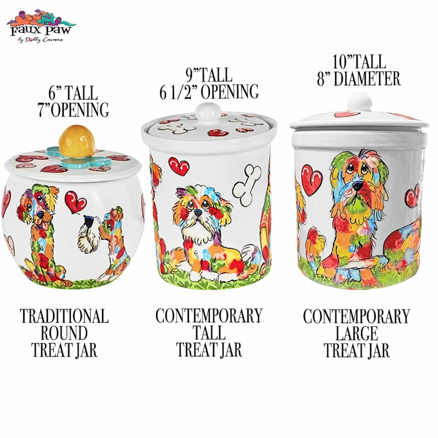 Each treat jar is hand thrown from the finest white porcelain China, hand-drawn, hand-painted, bisque fired for 16 hours, glazed with three hand-brushed applications, and finish fired for 8 more hours. Rubber gasket secure freshness seal. Food safe, dishwasher safe, non-toxic, and lead-free.
