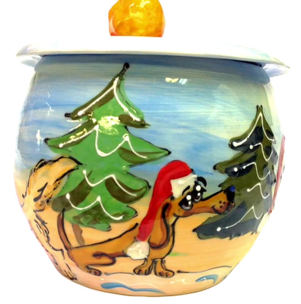 Custom Ceramic Pottery Dog Treat Jar. Unique and one of a kind, each piece is hand made in the USA.