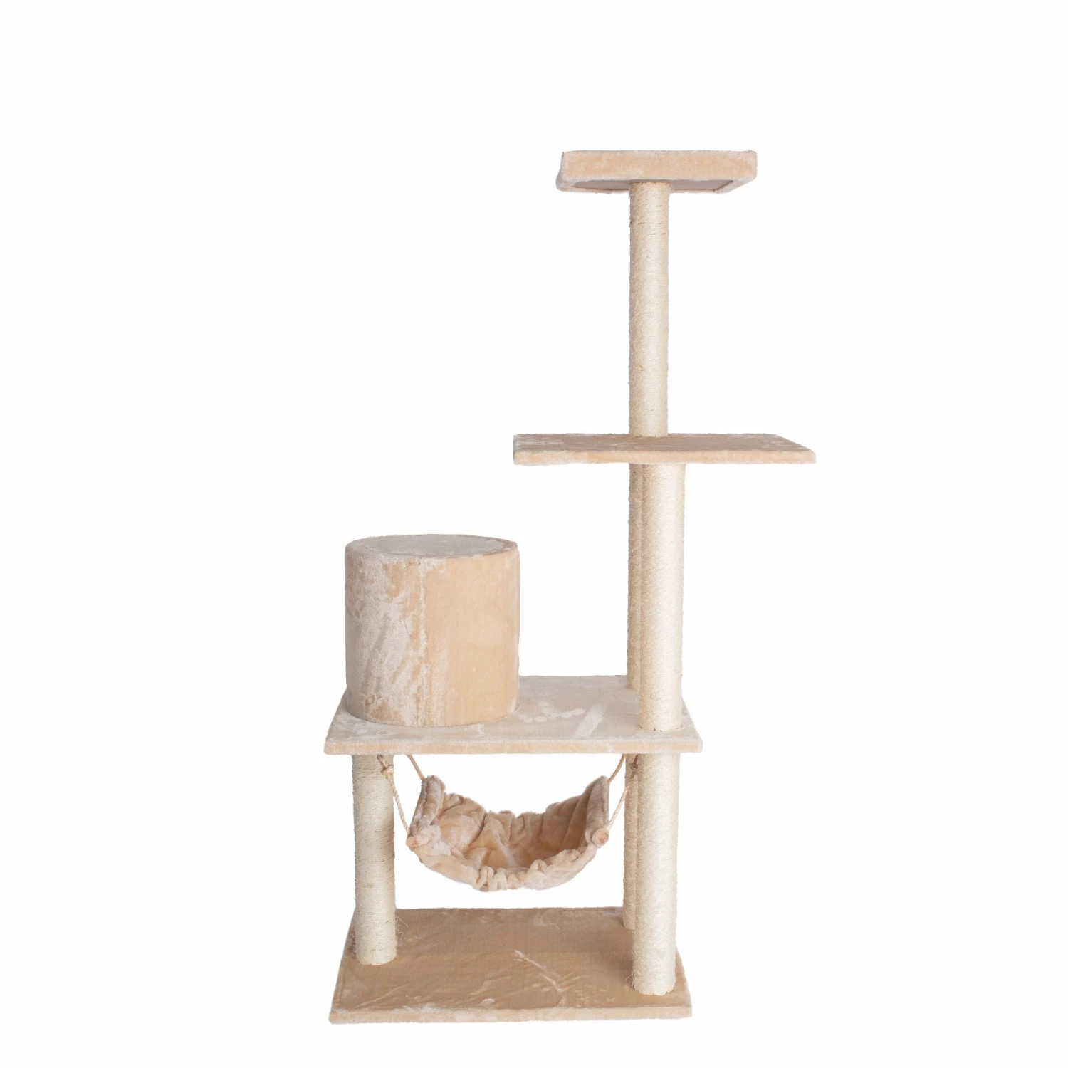GleePet GP78590221 59-Inch Cat Tree In Beige With Hammock And Round Condo