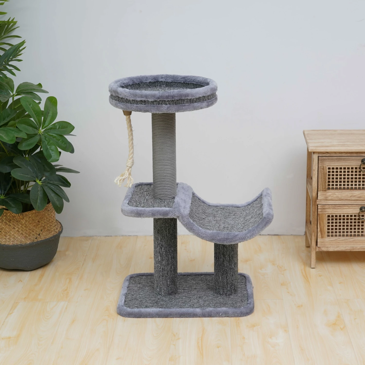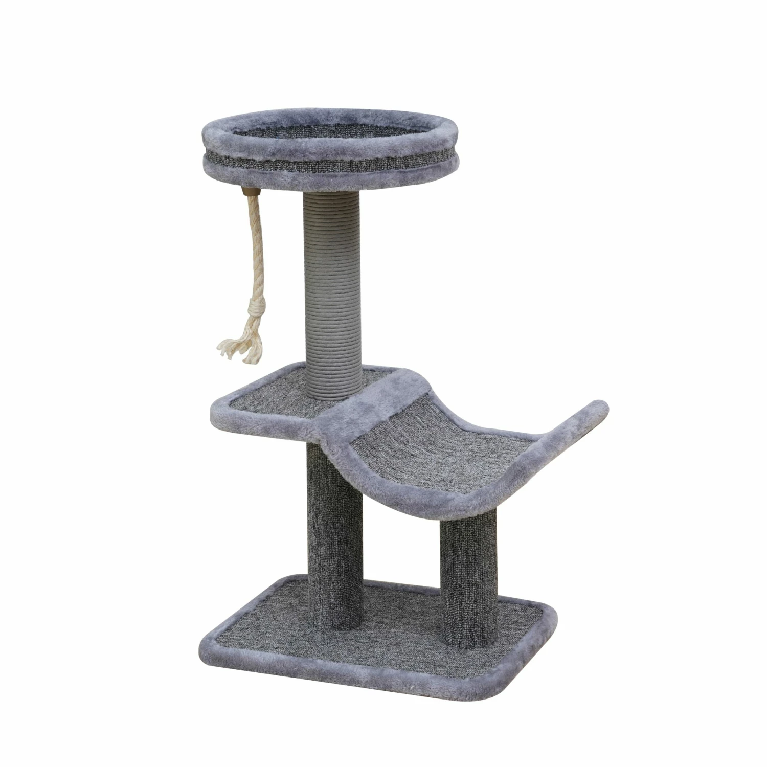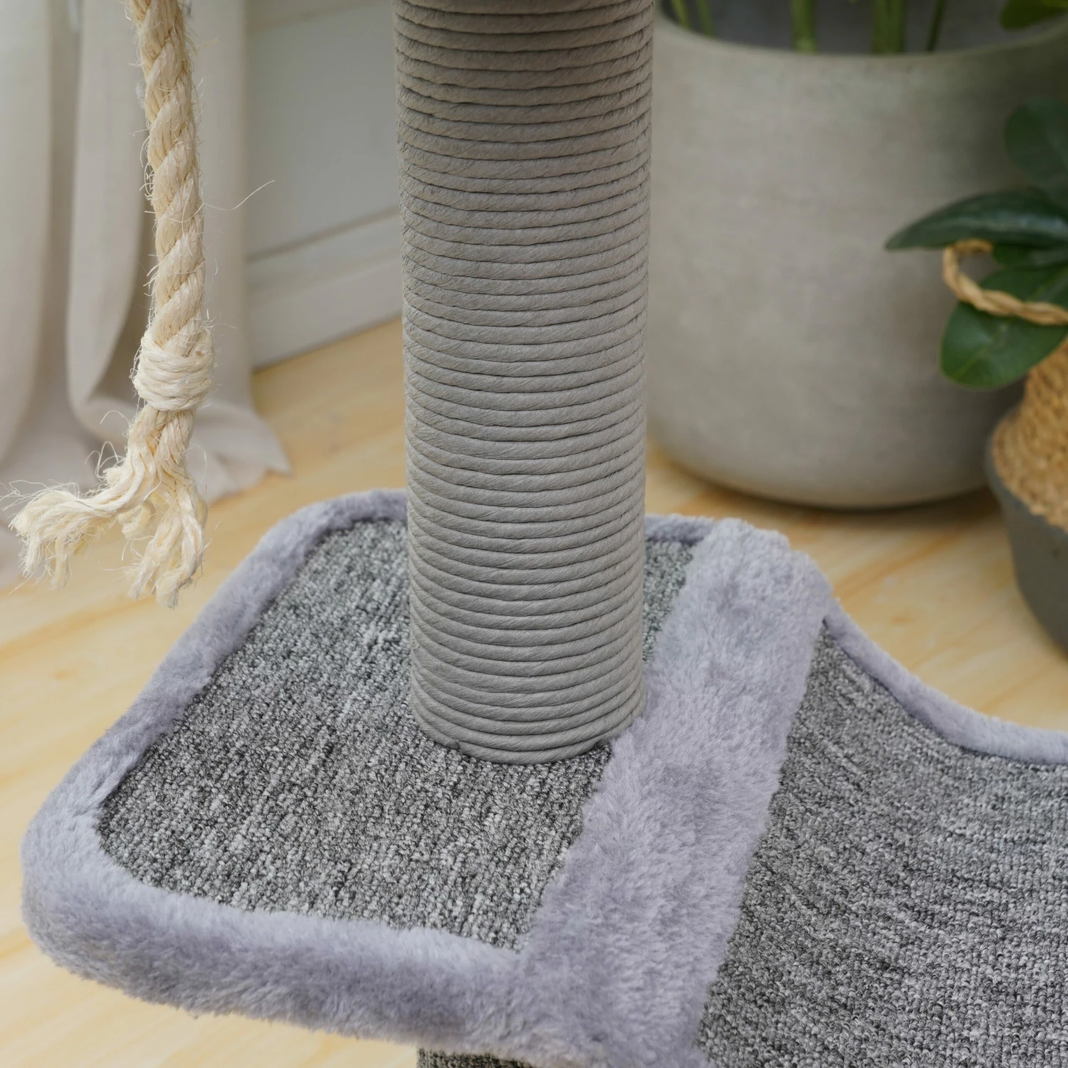 - Play. Our cat tree provides a rope toy for your cat to enjoy hours of playtime