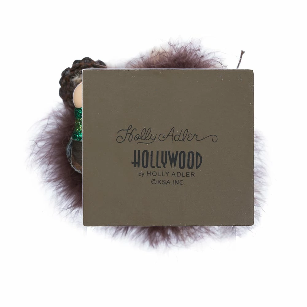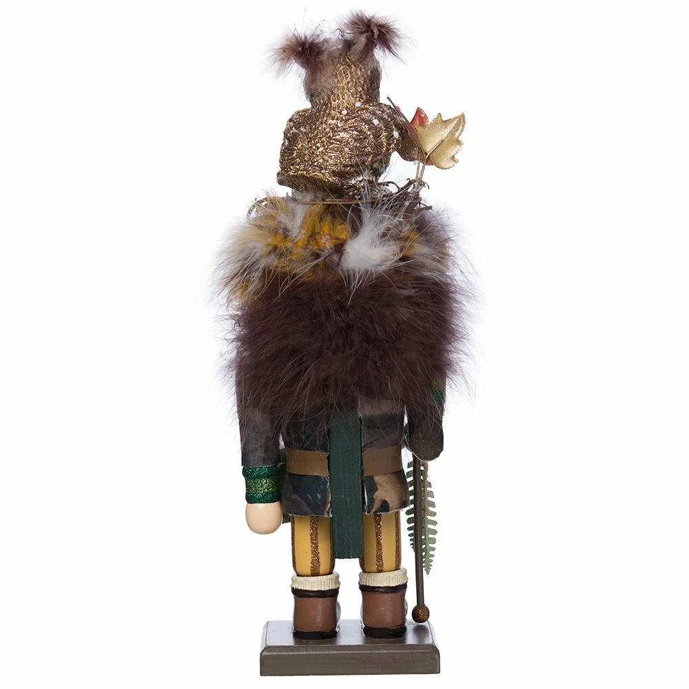 Hollywood Nutcrackers is a whimsical collection of nutcrackers created exclusively for Kurt S. Adler, Inc. and features an assortment of designs that put a unique, vibrant, memorable twist on traditional nutcrackers. This rugged woodsman is dressed in earth tones accented with glitter, and the design of his fun features a friendly owl sitting in a nest trimmed in feathers.