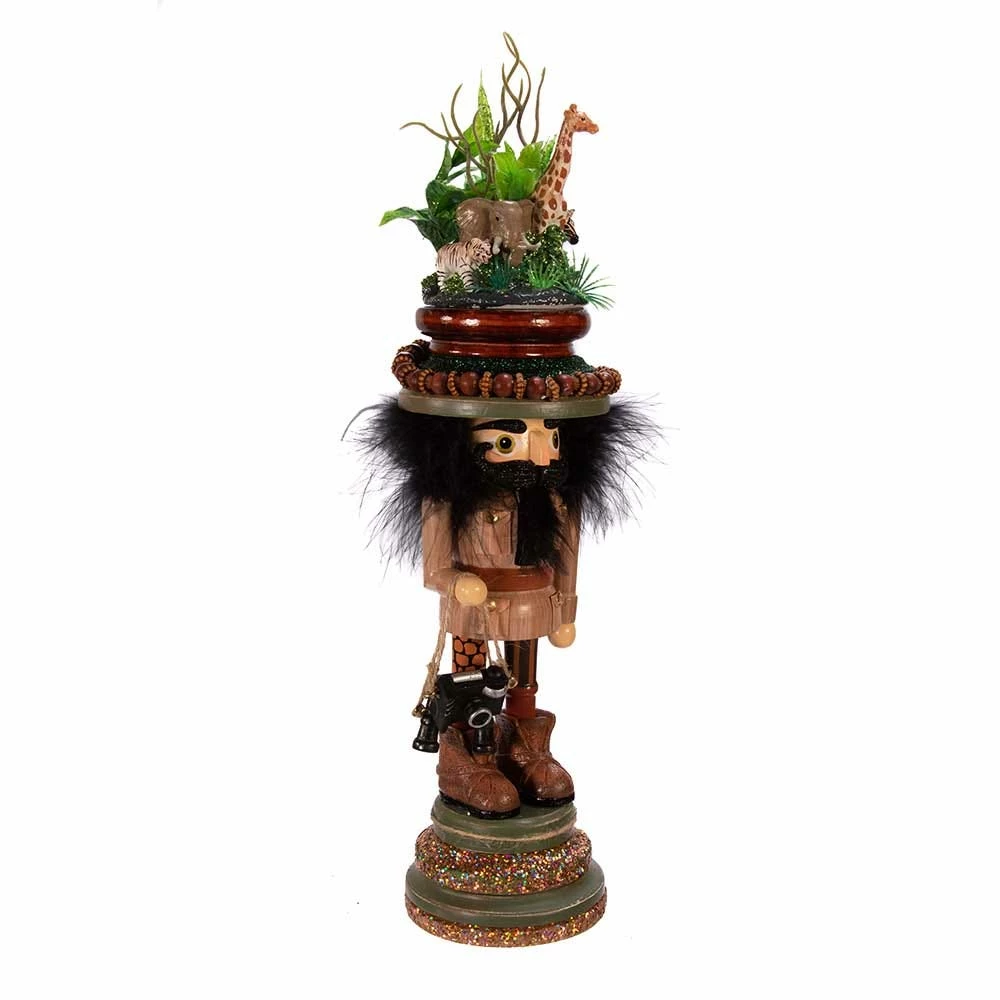 Designed by renowned artist Holly Adler, Hollywood™ Nutcrackers is a whimsical collection of nutcrackers created exclusively for Kurt Adler. This unique 15-Inch Zoo Menagerie Nutcracker is wearing a classic safari outfit with utility jacket and boots. In his hand is a camera to capture the beauty of nature. This nutcracker is topped off with a zoo hat featuring an elephant, giraffe, and zebra. A stunning addition to any holiday décor.