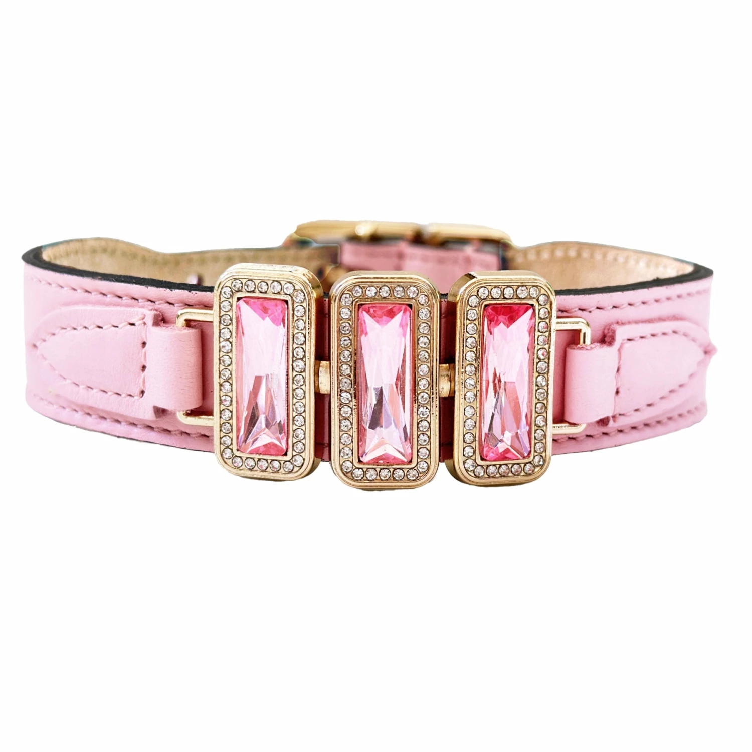 - Three Swarovski Princess cut baguette crystals in light rose