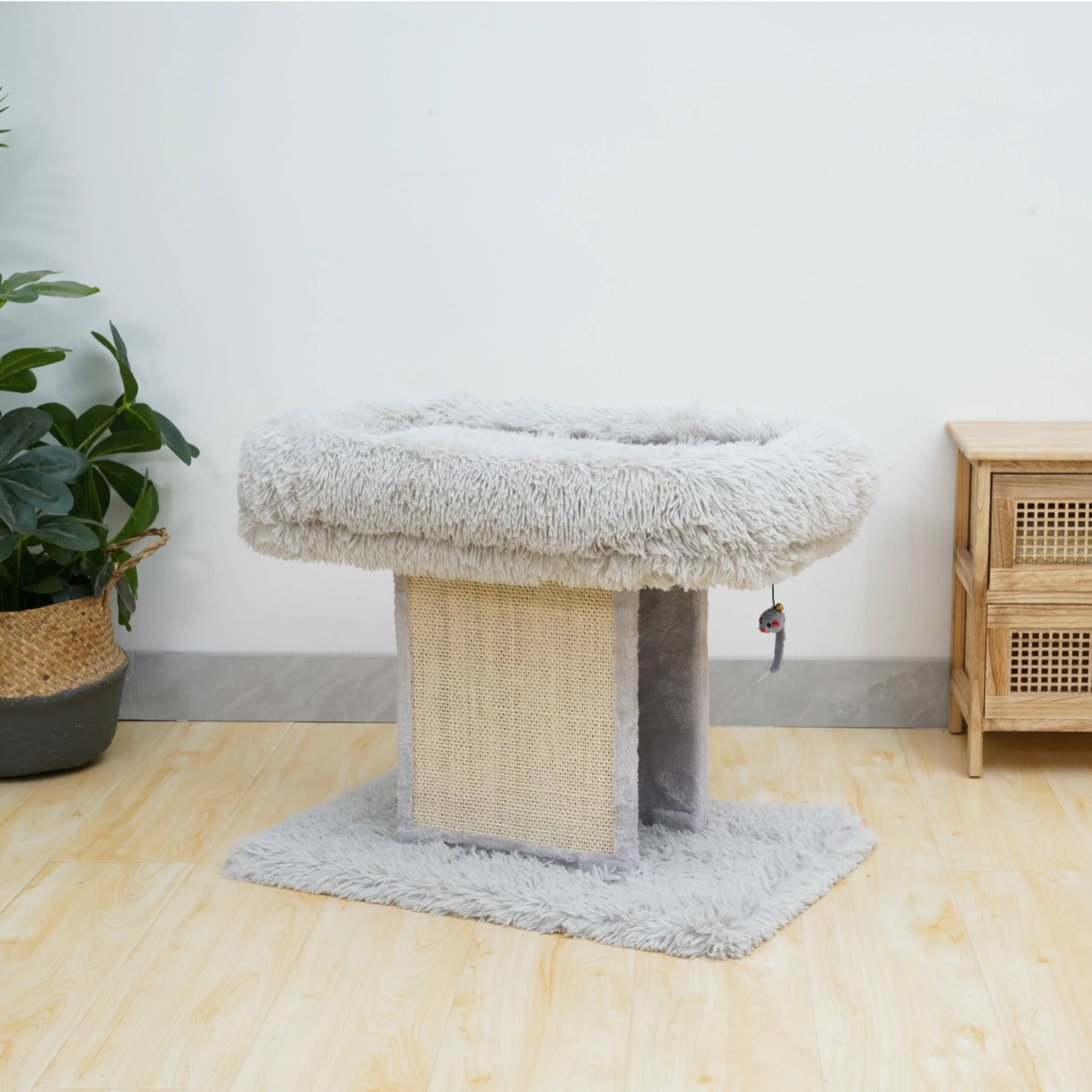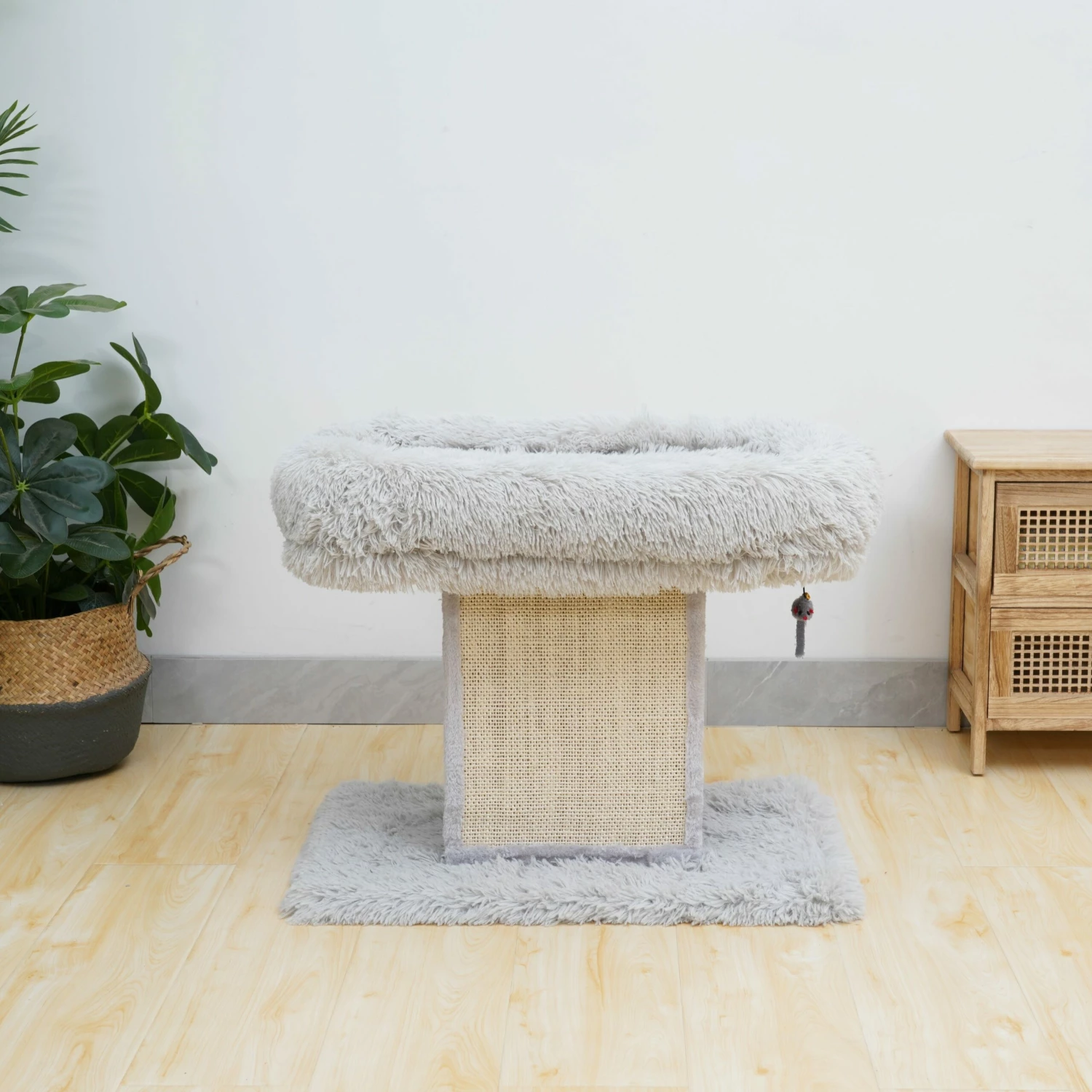 Our 2-in-1 Ivory cat perch is designed with a minimalistic approach to fit any limited home space and décor. This cat perch includes a large cat shag bed and wide sisal scratching post to provide the best comfort and stretching your feline friend needs. It also includes a hanging cat toy to provide your feline friend with hours of play. This cat perch is perfect and safe for cats of all sizes and ages to climb, scratch, and rest.