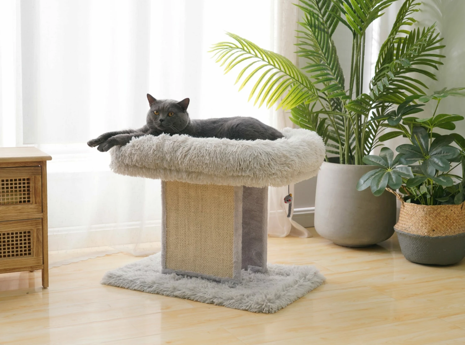 - Cats are natural climbers, which is why we added a soft shag sofa bed on top for your cat to climb, have some daily exercise, and enjoy higher views!