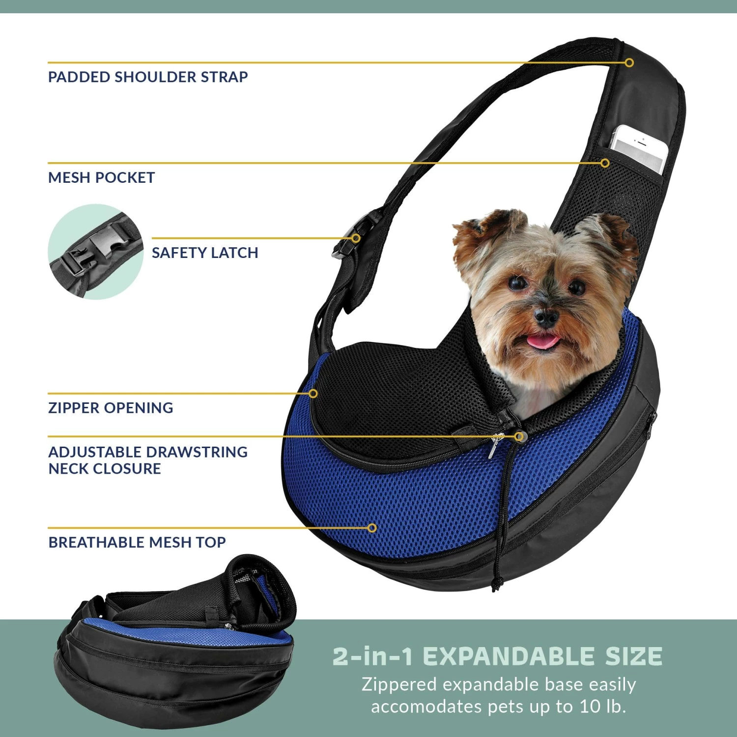- EXPANDABLE 2-IN-1 SIZE – You’ll love the versatility of this fantastic pet sling bag! Featuring a zipper on the bottom that expands the base to accommodate larger pets. You’ll always have the option to scoop your fur baby up and keep them safe and secure in the bag.