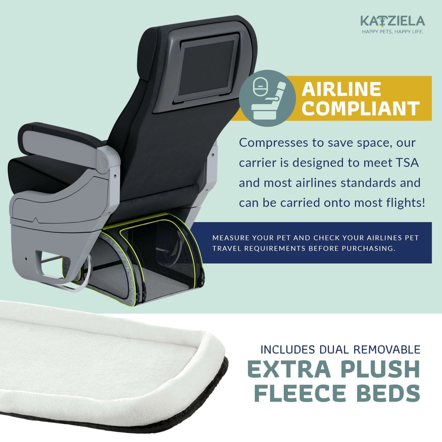 - DESIGNED TO MEET TSA REQUIREMENTS – Enjoy peace of mind while you and your furry companion travel by air. Fully designed to meet airport, airline, and TSA standards. The soft-sided carrier passes TSA security screenings and fits perfectly underneath seats during takeoffs and landings.
