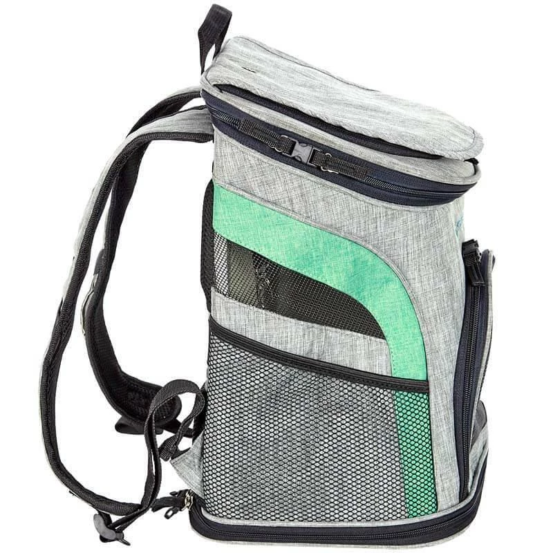 - PLENTY OF VENTILATION: The top can be left open for your pet to stick their head out of, you can zip on the mesh cover for breathability and visibility or you can snap on the shade cover to protect from the sun. The bag features mesh windows on the sides and front.
