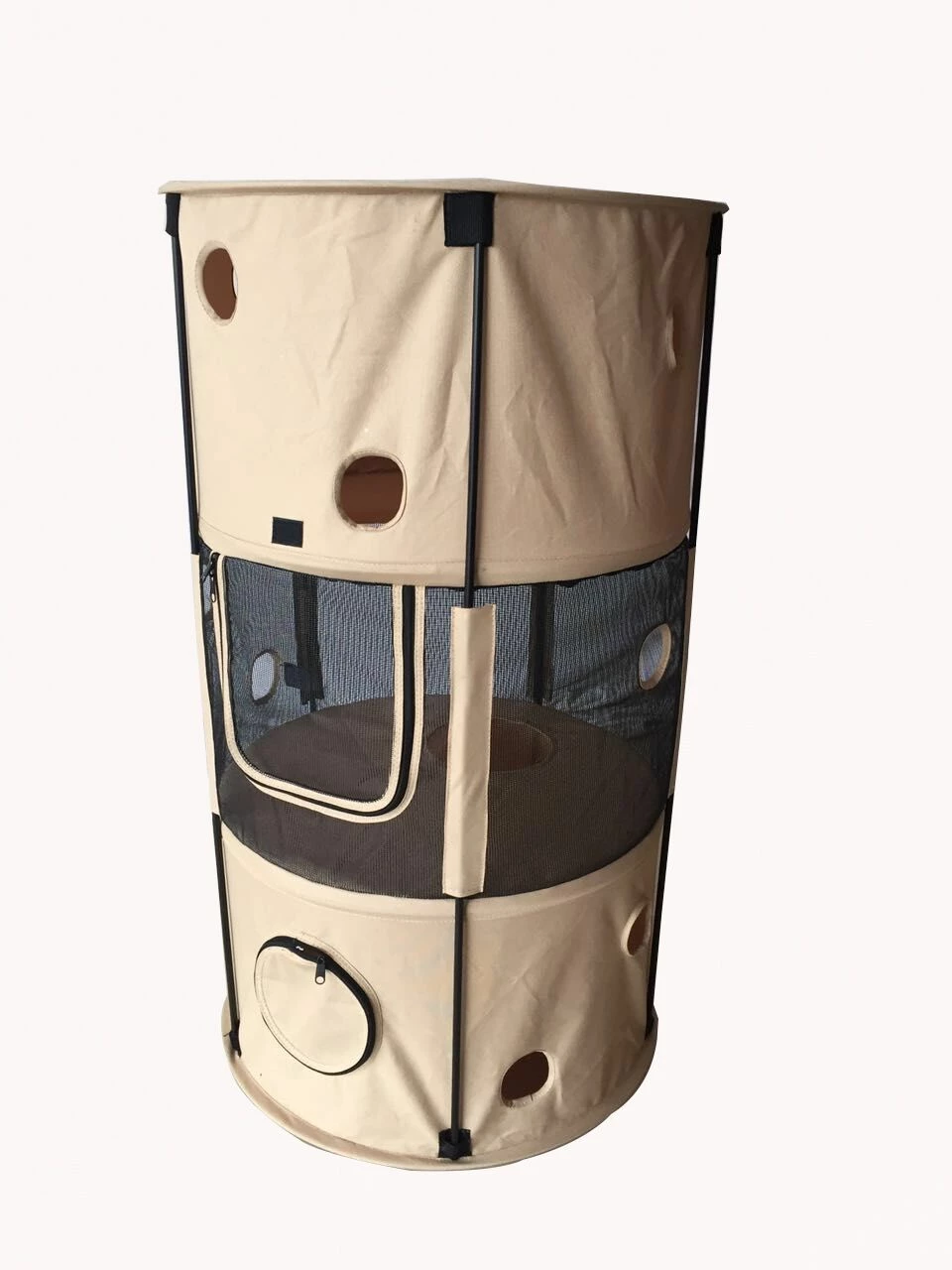 Khaki Climbertree Circular Travel Collapsible Travel Pet Cat House