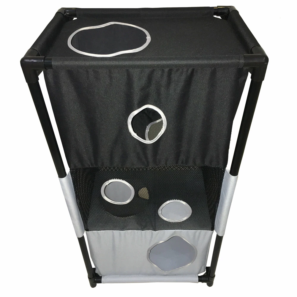 The Pet Life Kitty-Square obstacle soft folding sturdy collapsible travel cat house is composed of durable Ballistic Nylon and Mesh with inner-seat belt webbed stitching for added durability. The Kitty-square features numerous hole entrances at the bottom, mezzanine and top levels. Perfect for Cat Interactive play, this life-sized cat puzzle house is easily collapsible and perfect for traveling and easy setup. Less bulkier than the bulkier conventional cat houses, this cat house is both lightweight and great for storage. Great for multiple cats and great for brain activity development. Assembles in minutes, these poles easily connect into place and sturdy enough to carry up to 200 Lbs. of weight. Perfect for both indoor and outdoor usages. Features 3 levels of playful fun, great for napping or lounging. Available in Multiple Colors.