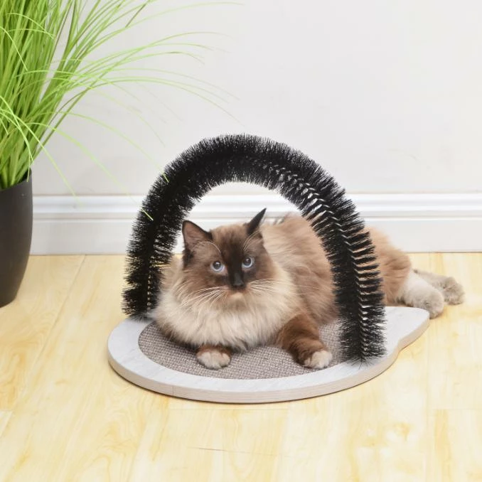 PetPals Nifty Scratcher is the ideal multi-function cat toy for your active pet. This modern cat scratcher design features a grey laminated wood material shaped into a cat face for a fun and cute design. Its compact size makes it the perfect travel companion and easy to store. Our cat scratcher includes a non-toxic plastic grooming arch brush and natural sisal scratching pad to help in keeping your cat’s claws trimmed and healthy.