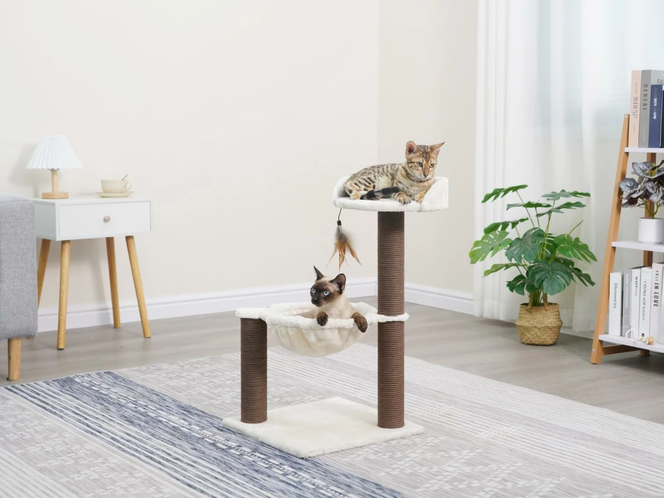 - Our Nirvana cat tree provides a feather toy for your cat to enjoy hours of playtime