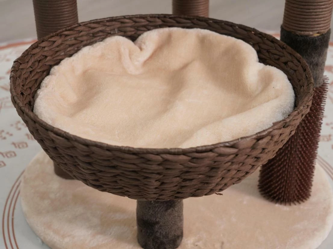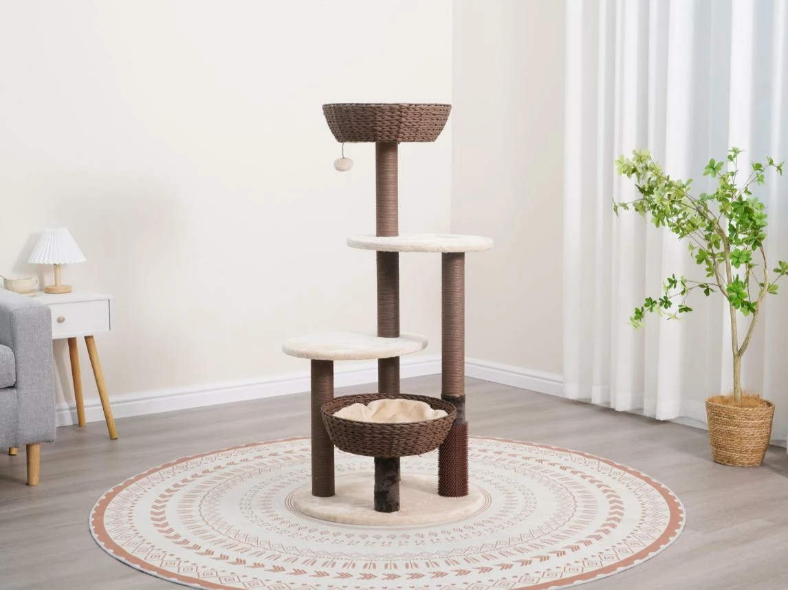 Pharaoh 5-Level Large cat tree is the perfect sustainable multi-activity cat tree for your active pet. Our boho design includes two soft plush removable cushions and two recycled paper rope handwoven baskets. This eco-friendly cat tree features multiple recycled paper rope scratching posts along with a pom pom toy and rubber grooming brush. What makes the Handwoven collection special is its environmentally conscious materials, making it safe for your pet and great for the environment.