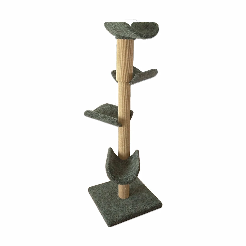 Place in front of your kitty’s favorite window and the PlayPerch Quatro will soon become her favorite place to play, lounge and nap. The purr-fect addition to make any room cat-friendly. Made of quality handmade construction, the multi-tiered luxury PlayPerch Quatro offers comfortable lounging space and all the scratching necessities your cat needs. Constructed of heavy wood, 4″ solid pressure treated post lined with durable sisal carpet, This dream playhouse for cats comes fully assembled