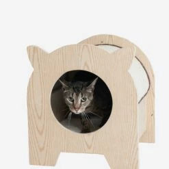 Armarkat Real Wood Medium Triangular Natural Solid Wood Cat Condo