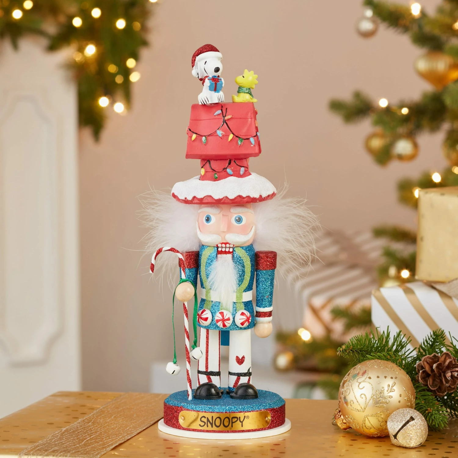 Designed by renowned artist Holly Adler, Hollywood™ Nutcrackers is a whimsical collection of nutcrackers created exclusively for Kurt S. Adler, Inc. and features a variety of designs including Christmas, fantasy, and everyday nutcrackers. Their designs put a unique, vibrant, memorable twist on traditional nutcrackers. This 12-inch Snoopy Hollywood™ Nutcracker from Kurt Adler is a fun and festive addition to any Peanuts© collection or nutcracker collection. Its design boasts a fun hat featuring Snoopy in a Santa hat sitting on top of his red doghouse. He is accompanied by Woodstock and his house is decorated with Christmas lights.