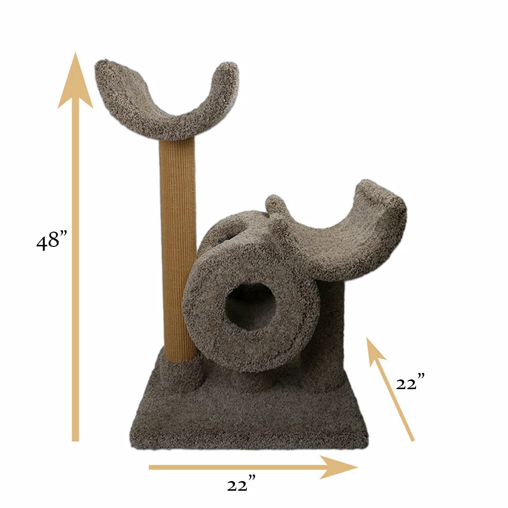 The TP2 is great for homes with multiple cats. The large perches, spacious tunnel and sisal lined scratching post, provides a lot of opportunity for your cats to scratch, hide, play rest! It’s small footprint allows you to save space and still affords much functionality.
