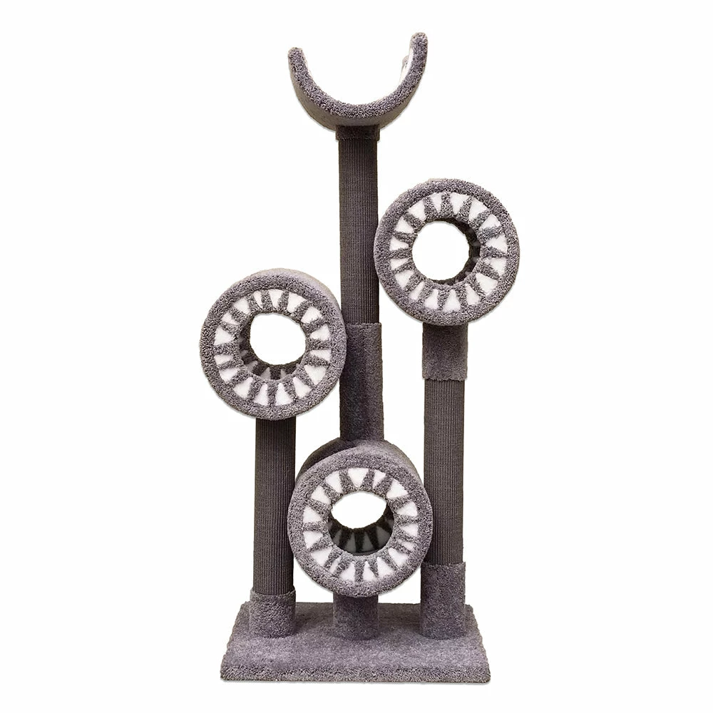 Treat your Kitty’s like the royalty they are with the Royal T3P Deluxe Cat Tower! Features high-quality furniture grade royal purple vinyl on its (3) 12″ I.D. Cat tunnels and (1) curved cat perches. This sturdy tower provides your cat multiple options to play or hang out.